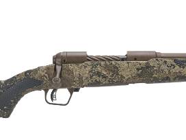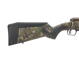 The biggest bulls. The longest shots. With the new Savage 110 High Country, they're all within your reach. The rifle is built to maximize accuracy with a spiral-fluted barrel and bolt, as well as the Model 110 action secured three-dimensionally along its entire length within the AccuStock internal chassis. The AccuFit system lets hunters customize length-of-pull and comb height of the TrueTimber Strata synthetic stock. Plus, the user-adjustable AccuTrigger offers a crisp, clean pull critical for making precise shots at extreme distances. The Cerakote finish on the barrel and receiver protects against corrosion and heat to withstand the toughest terrain and weather conditions.