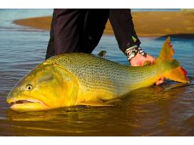 Not to be confused with the ocean/saltwater dorado or mahi mahi, South America's "freshwater" Golden Dorado are perhaps the most sporting freshwater game fish on the planet. You will fish the beautiful Rio Parana River, where the dorado hits with an unmistakable bite and once hooked gives you an aerobatic performance of flips, rolls, and twists unrivaled in the world of fishing. Hang on, and marvel at this incredible display of aerial genius. This is a 5night/4 day trip for two.