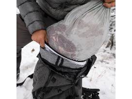 To minimize excess leverage and maximize load placement, the 2200 cubic inch internal load cell positions the meat next to the frame and closest to your center of gravity. This design leaves 4800 cubic inches of usable space to load your gear for the pack out. Two drain holes in the bottom of the main bag prevent blood from pooling inside the load cell.