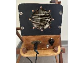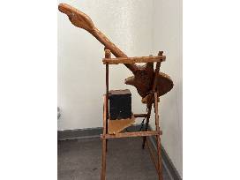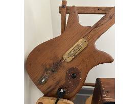 Handcrafted wooden guitar and amp on stand. 54" tall x 32" wide "Things don't have to be discarded, just because we think their life cycle has ended." Julio Uchimura