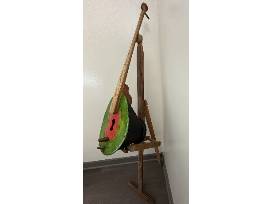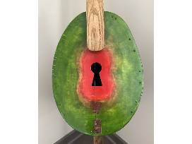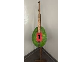 Handcrafted wooden guitar by artist Julio Uchimura. 54" tall x 16" wide "Things don't have to be discarded, just because we think their life-cycle has ended." Julio Uchimura