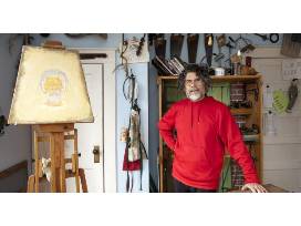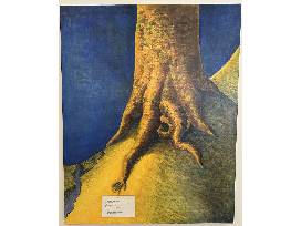 Acrylic painting of life growing into a great redwood. Julio Uchimura 39" tall x 31" wide