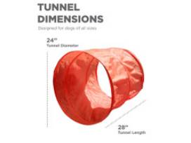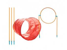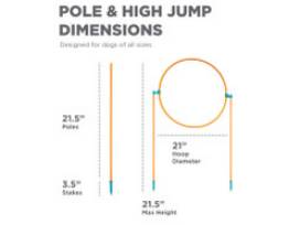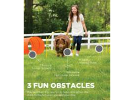 The Zip & Zoom Outdoor Agility kit challenges your dog's I.Q. and provides physical exercise with fun! This set is great for training your dog to learn new tricks or commands with an easy to set up obstacle course. This outdoor training set features one circular collapsible tunnel, six weave poles, and an adjustable jump with hoop that come in a slim carry case.