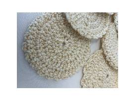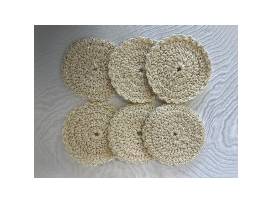 Set of 6 Cream and gold coasters. 100% Acrylic machine wash and dry gentle. Handcrafted with love by Pearl, 97 years young!