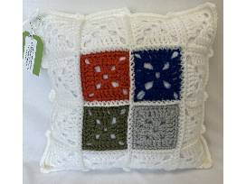 Double Patterned Handmade 14"x14" Crochet Pillow. Handcrafted with love by Pearl, 97 years young!