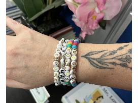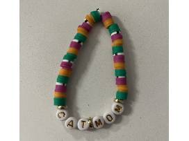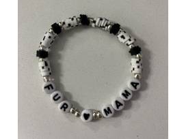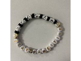 Four pet themed friendship bracelets quoting "Cat Mom" "Dog Mom" "Fur Mama" "Stay Pawsitive" all hand made by Michaela