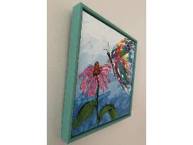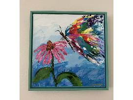 "Butterfly" by Carrie McCall, acrylic painting, framed 15" X 15".