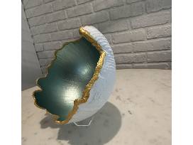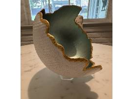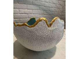 Exquisite teal, gold, and white handmade Concrete Art Bowl with acrylic stand. Diameter 8". Local artisan June Masencup's latest creation. Perfect to have and to give! Not food safe, decorative use only.