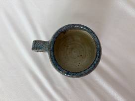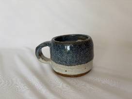 Espresso sized handmade blue and white ceramic mug. Can hold 2 shots of your favorite espresso. If you really love it, there are two in our auction that are coordinating!