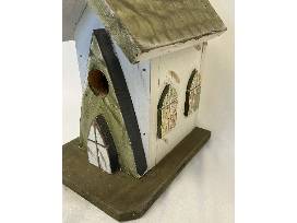 Hand crafted church bird house by Dr. Richard Zechini and painted by Theresa Ogden