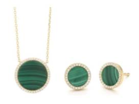 - Matching 14kt Yellow Gold Round Malachite .12ctw Diamond Halo Pendant