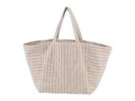 The Aria Tote is crafted in a sturdy lined canvas, a generously sized carry-all making it an ideal accessory for any adventure. Designed for beach outings, airplane travel, or running errands, this gray and ivory striped tote features an inside zip pocket, plus a BONUS cotton canvas pouch bag (11"x 7"x 3") for organizing all your essentials.
