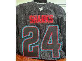 Team signed. Back Panel - SHARKS #24 jersey in Size 60.