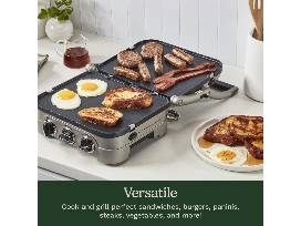 - 5 ways to grill: reversible plates convert to a full grill or griddle, half grill/half griddle, contact grill, and panini press