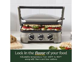 - Adjustable temperature controls: adjust from "warm" to "sear" in grill/panini mode, and from 200F to 425F in griddle mode