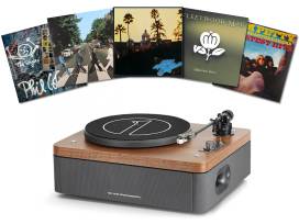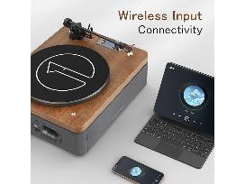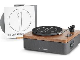 - 1 by ONE All-in-One HiFi turntable vinyl record player with built-in speakers, phono preamp, and vintage wood design
