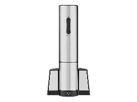 - Foil cutter ensures clean openings and drip-free pours and neatly stores inside the charging base when not in use