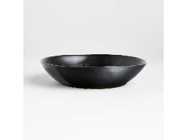 - Set of (2) Crate & Barrel craft matte black stoneware low bowls