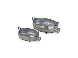 Set of (2) Dottie galvanized metal piglet planters