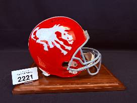 - Riddell On-Field Authentic Denver Broncos Old Style "Crazy Horse" Orange throwback helmet autographed on the right side in black marker by Hall-of-Fame QB #7 John Elway