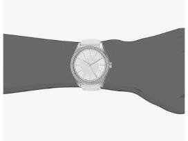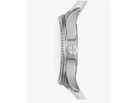 A|X Armani Exchange turns out a fun, feminine watch in immaculate white leather and stainless steel, with a crystal top ring to step up the sparkle.