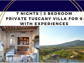 ENJOY A WONDERFUL WEEK IN TUSCANY WITH A VACATION PACKAGE FULL OF EXTRAS! STAY IN A 3-BEDROOM PRIVATE VILLA AND BE HOSTED BY ONE OF THE MOST HIGHLY RATED TUSCANY-BASED VACATION PROVIDERS. THIS LOCATION IS A PERFECT STARTING POINT FOR DAY TRIPS TO DISCOVER THE BEAUTIFUL ARTISTIC CITIES OF TUSCANY AND UMBRIA AND THE BEST PLACE TO RELAX YOURSELF IN THE MIDDLE OF THE NATURE. IF YOU HAVE MORE THAN SIX IN YOUR GROUP, YOUR HOSTS WILL WORK WITH YOU TO ADD THEM TO YOUR TRIP.