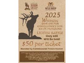 4982025 Wyoming Commissioner's License For Deer, Elk Or Pronghorn. All Proceeds From This Raffle Will Be Divided Equally Between The Wyoming Wild Sheep Foundation And The National Bighorn Sheep Center To Be Used On Behalf Of Wyoming's Wild Sheep.