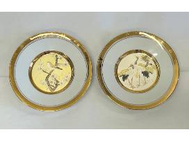 2 Two gold and white 6in decorative plates - from the Hamilton Collection of Japanese Floral Calendar Plates