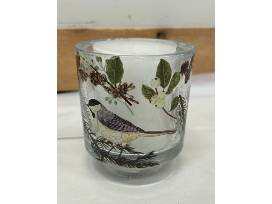 - Frosted Cachepot/Tealight Candleholder featuring a chickadee.