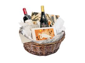 Indulge in the Mid-Mod Vibe with 2 vintage wines, a humorous collection of birdy with paired with retro art, a canvas bag to tote your collection, and a ceramic planter sure to blend with any decor.