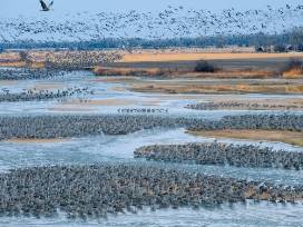 0Experience the dramatic wonder of over 500,000 Sandhill Cranes converging on the Platte River Valley in Central Nebraska on this private trip in 2026 led by Master Birder Curt Frankenfeld and a guide from the Headwaters Corporation. The small group will visit private blinds on Saturday, March 21st, for a few hours at sunset and again on Sunday, March 22nd, for sunrise and a few hours after. This trip has a fixed price of $135 per person with only 10 spots available.