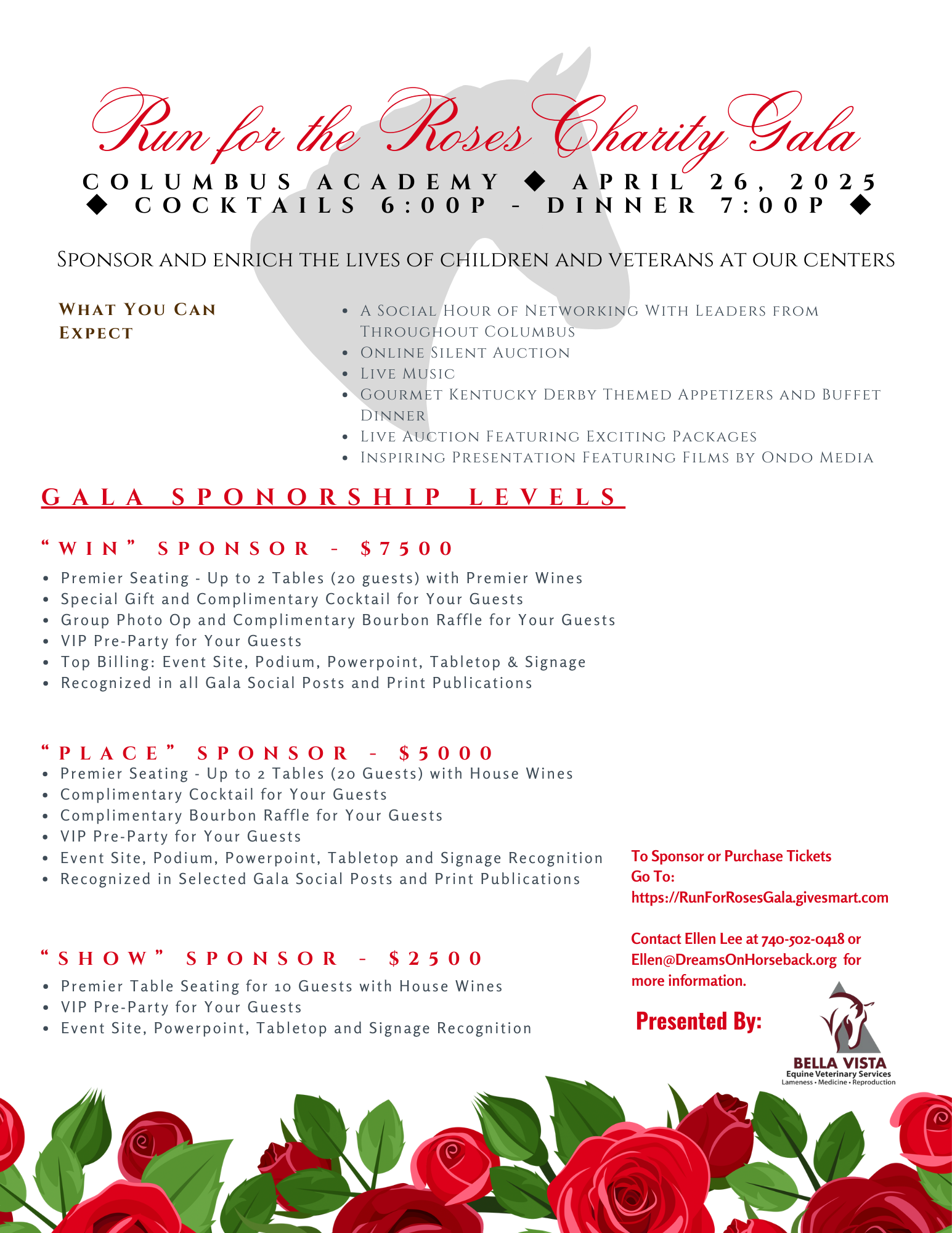 The annual gala serves as Dreams on Horseback's primary fundraiser for Dreams on Horseback and allows us to raise the critical funds needed to enrich lives with horses!