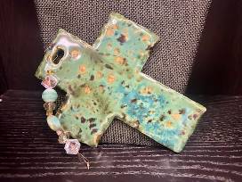 Add a touch of beauty and faith to your home with this stunning handcrafted ceramic cross, created by St. Ann's own Annmarie Ghio.