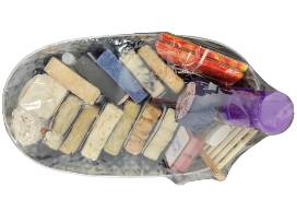 Your gift set contents include 9 different varieties of Hand and Body soap, foaming hand soap, lotion bar, lip balm, soap dish, wax melt, lip scrub shower steamers, magnet, sisal bag, and a 2 coaster set.