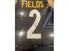 This framed jersey is autographed by quarterback Justin Fields. With authenticated JSA certified signature and professional framing, this unique piece is perfect for football fans, collectors, and those excited about Fields' future in the NFL.