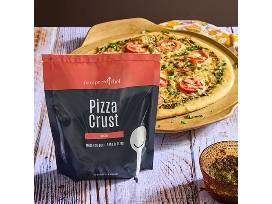 Round, partially glazed stone baker with pizza crust mix