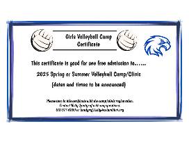 Please turn in this certificate with the camp registration form which will be sent out in mid to late April. Contact Kelly Landgraf with any questions.