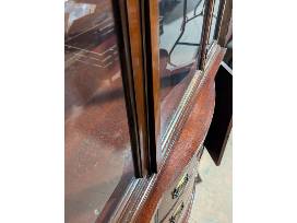 Unlock a world of possibilities with this 71" x 39" x 15" armoire. While the door is slightly warped and the repaired glass panel shows minor scratches inside, this piece still boasts classic elegance. A little TLC will turn this into a centerpiece of your home. Let's get this storybook furniture into your story!