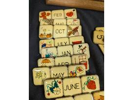 Plan your days the old-school way with this charming vintage wooden calendar. Measuring 18" x 11", it features moveable ceramic-like tiles for changing months and years, making it as practical as it is nostalgic. With a warm, aged patina, it's perfect for adding a touch of timeless charm to any desk or wall. A calendar that never runs out of dates-talk about timeless!