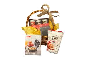 Start out the morning with a mini waffle iron, insulated hot mug, pancake mix and hot cocoa