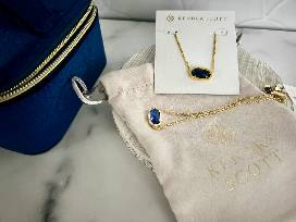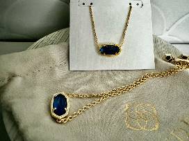 Elevate your style with this stunning Kendra Scott bracelet and necklace set from Smyth Jewelers. Both pieces are gold-plated and feature a captivating blue iridescent stone, perfect for adding a touch of luxury to any outfit. Comes with a velvet travel storage case for safekeeping and easy transport.