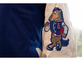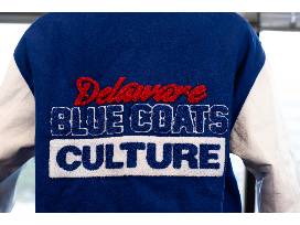 Show your Delaware pride in style with this exclusive Delaware Blue Coats Varsity Jacket, a standout piece in red, white, and blue. Crafted with a wool-blend body, sleek faux leather sleeves, and detailed embroidered Blue Coats logos, this jacket is as eye-catching as it is comfortable. Designed with a unisex fit and premium finishes, it's ideal for game nights, community events, or everyday wear.