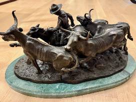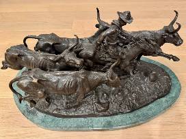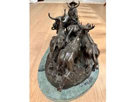 Stampede bronze sculpture by Frederic Remington. Medium size - 15"H x 30"L x 15"W. 120 lbs