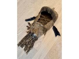 1American Indian handmade and decorated leather papoose. Decorative Wall Hanging - 20"H x 13"L x 15"W
