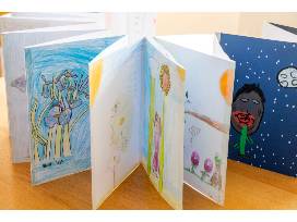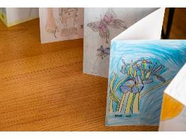 Based on the concept of the accordion books in many Asian cultures, the students of 3-205 each contributed art and poems inspired by celestial gardens. This format has enabled the words and images of each student to be included so that the future owner will have access to the unfiltered imagination and expression of these children's minds at their fingertips. The illustrations and poems flow from one to another in one undivided stretch reflecting the eternity of the stars. This is a truly unique collection, sure to inspire with the originality of childhood imaginations and perceptions.