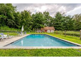Three (3) nights in a serene 4-bedroom/3-bath farmhouse in New Milford, CT (only 1.5 hours away from NYC). The home is situated on a 6-acre estate where you can truly enjoy the peace & quiet with up to 10 family & friends. Swim in the heated pool with views of the forest line. Relax in the screened jacuzzi. BBQ and dine outside under the stars. Stroll around the private pond. Great antiquing, restaurants and hiking all within a few minutes drive away. Skiing and tubing at Mohawk Mountain is only 25 minutes by car from the home.