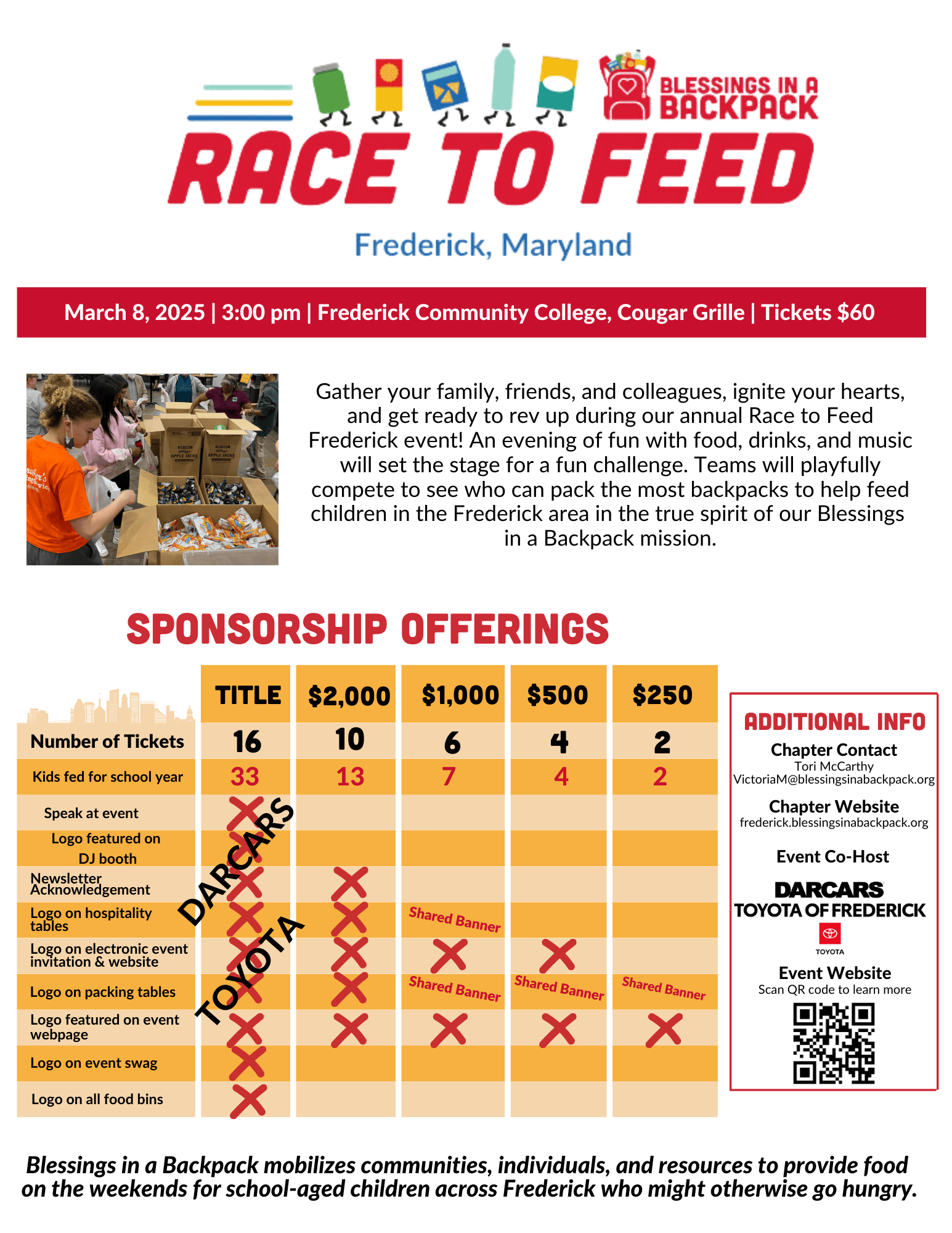 New this year: a silent auction with amazing items, benefiting Blessings in a Backpack's mission to fight food insecurity in Frederick County.