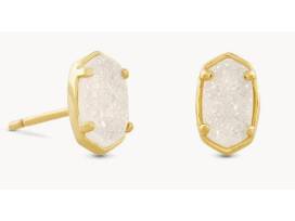 One pair of Kendra Scott Emilie Stud Earrings in Gold Iridescent Drusy.