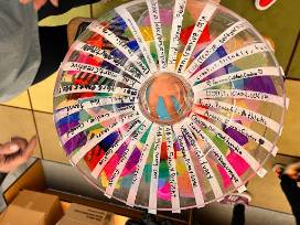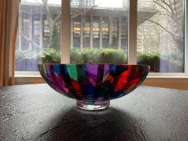 A decorative glass bowl, perfect as a unique piece of art in your home, or more practically, for holding fruit on your kitchen counter. The kids of class 4-302 decorated this beautiful piece with papier mache and their own descriptive adjectives, surrounding the centerpiece "I am..."