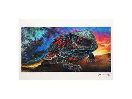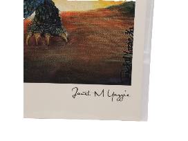 Arrowhead Cheii, 2024 Janet M Yazzie, Dine' Dimensions: 11' x 17' Cheii is a peaceful, large, colorful creature who wanders around my yard during the summer/fall season. He brings good luck and protection. Janet's clans are Kinlichini (Red House) and Ma'ii Deeshgiizhinii (Coyote Pass People). She is originally from Lower Greasewood, currently resides in Flagstaff, Arizona. Renown for her vibrant contemporary portrayals of landscapes, night skies and Navajo traditions. She infuses her canvases with a kaleidoscope of colors. Janet shares art enrichment with the community and is a member of "Art of the People" organization. The print is signed by Janet Yazzie.